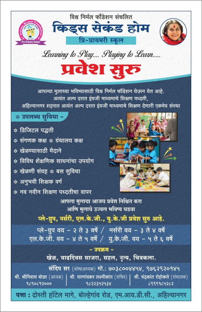 KID’S SECOND HOME Pre-Primary School is the best English Medium School in Ahmednagar District, established in the year 2017. Our prime vision is to provide quality English-Medium education to all the sections of the society with a minimum Fees & Expenses.
